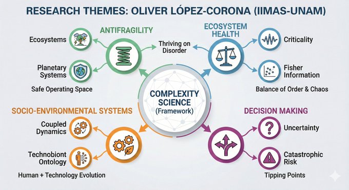 I’am a CONACyT‘s Investigadores por México research fellow at IIMAS–UNAM, working mainly in a general framework of Health (especially Ecosystem Health) that covers: the current state of health in terms of composition, structure and function (Integrity); the dynamics of the system (criticality) and the type of response to external disturbances (Antifragility).